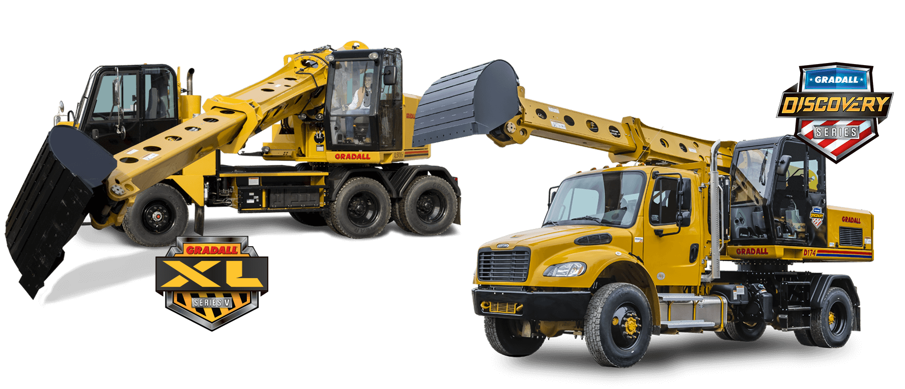 Gradall XL Series V and Discovery highway-speed excavators travel quickly to one or more jobsites and then back to the safety of the equipment yard at the end of the day. With Gradall’s world-famous full tilting, telescoping boom, and an array of available attachments, both XL and Discovery models offer versatility with unmatched mobility. Choose from XL Series V or the Discovery models built on a Freightliner chassis, designed with government and specialty contractors’ budgets in mind.